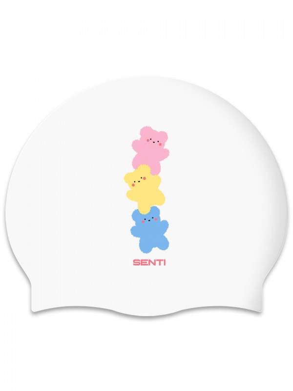 [SC-2539] Fluffy Bear WH Silicone Swimming Cap